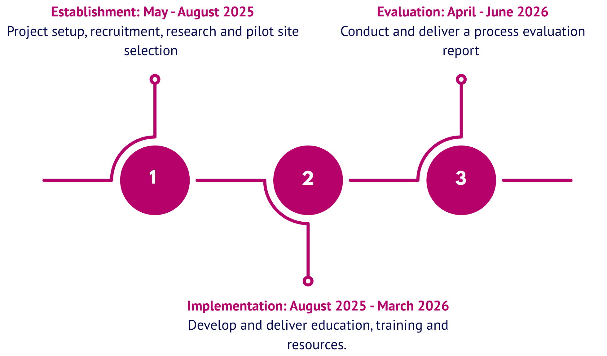 As the project concludes, we’ll conduct a process evaluation to capture key learnings and identify opportunities to strengthen the rollout of future, related initiatives.